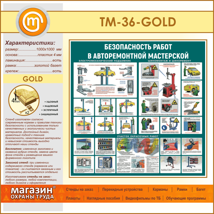 Стенд «Безопасность работ в авторемонтной мастерской» (TM-36-GOLD) в Твери купить