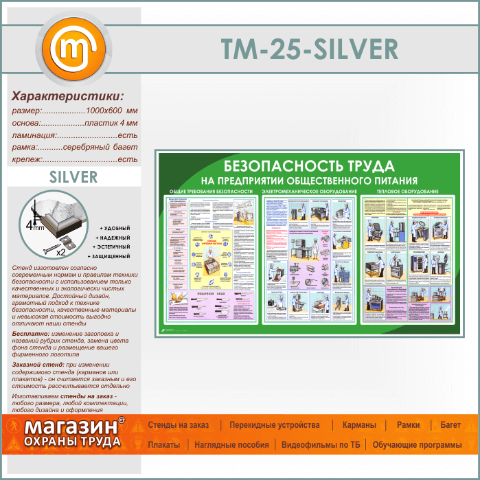 Стенд «Безопасность труда на предприятиях общественного питания» (TM-25-SILVER) в Твери купить
