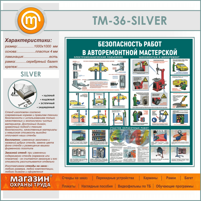 Стенд «Безопасность работ в авторемонтной мастерской» (TM-36-SILVER) в Твери купить