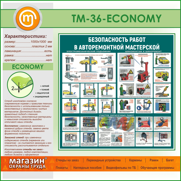 Стенд «Безопасность работ в авторемонтной мастерской» (TM-36-ECONOMY) в Твери купить