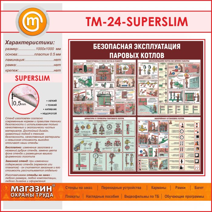 Стенд «Безопасная эксплуатация паровых котлов» (TM-24-SUPERSLIM) в Твери купить