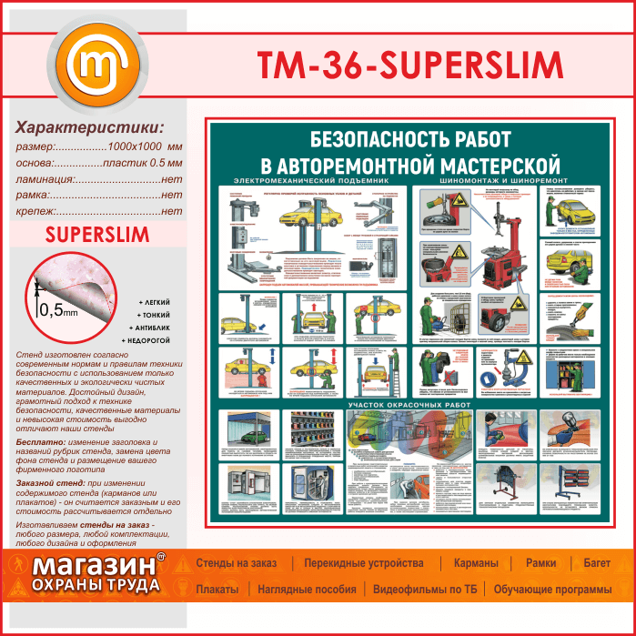 Стенд «Безопасность работ в авторемонтной мастерской» (TM-36-SUPERSLIM) в Твери купить