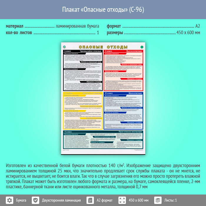 Плакат «Опасные отходы» (С-96, ламинированная бумага, А2, 1 лист) в Твери купить