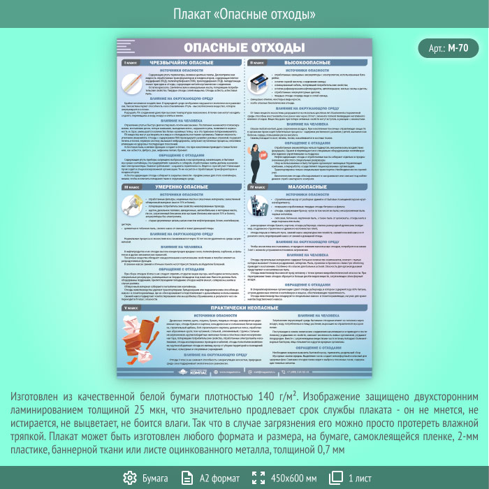 Плакат «Опасные отходы» (М-70, ламинированная бумага, А2, 1 лист) в Твери купить