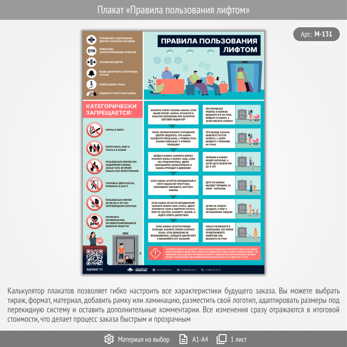 Плакат «Правила пользования лифтом» с QR (М-131, 1 лист) в Твери купить