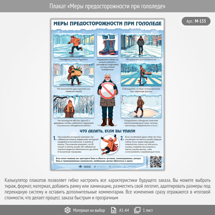 Плакат «Меры предосторожности при гололеде» с QR (М-133, 1 лист) в Твери купить