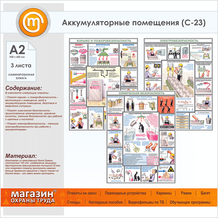 Плакаты «Аккумуляторные помещения» (С-23, ламинированная бумага, А2, 3 листа) в Твери купить