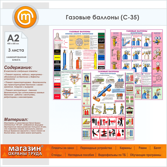 Плакаты «Газовые баллоны» (С-35, ламинированная бумага, А2, 3 листа) в Твери купить
