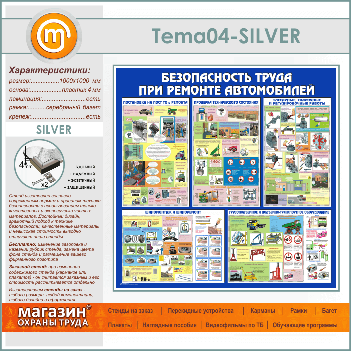 Стенд «Безопасность труда при ремонте автомобилей» (TM-04-SILVER) в Твери купить
