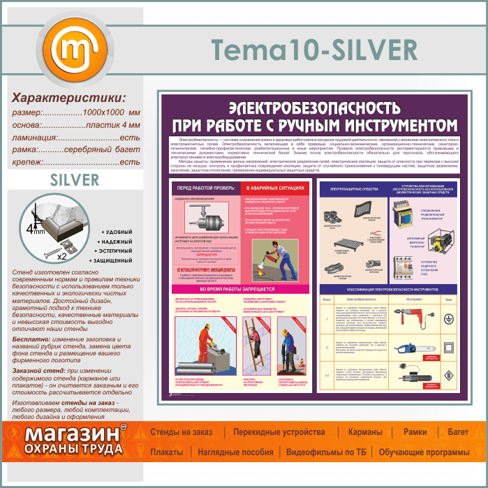 Стенд «Электробезопасность при работе с ручным инструментом» (TM-10-SILVER) в Твери купить