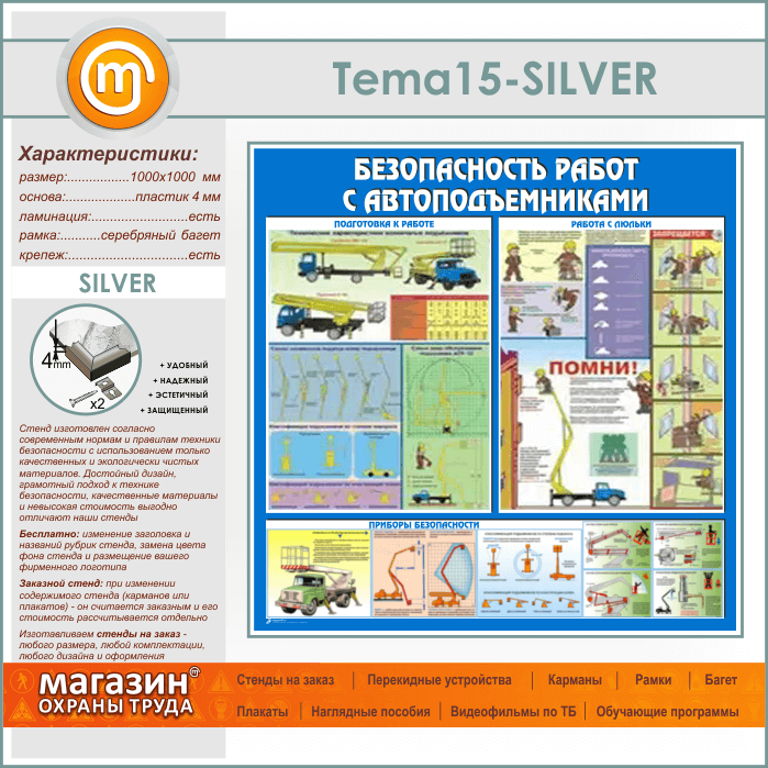 Стенд «Безопасность работ с автоподъемниками» (TM-15-SILVER) в Твери купить