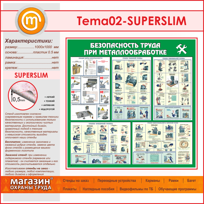 Стенд «Безопасность труда при металлообработке» (TM-02-SUPERSLIM) в Твери купить