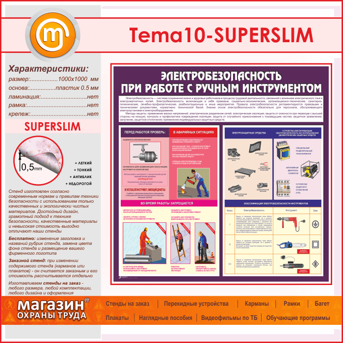 Стенд «Электробезопасность при работе с ручным инструментом» (TM-10-SUPERSLIM) в Твери купить