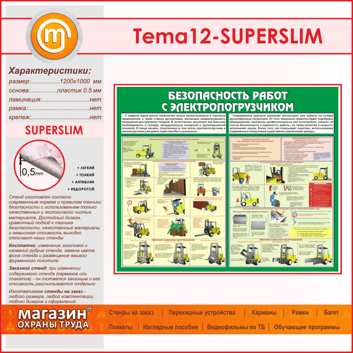 Стенд «Безопасность работ с электропогрузчиком» (TM-12-SUPERSLIM) в Твери купить