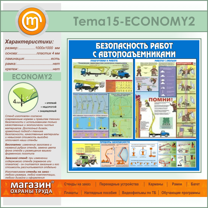 Стенд «Безопасность работ с автоподъемниками» (TM-15-ECONOMY2) в Твери купить