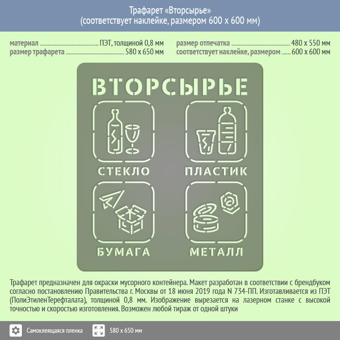 Трафарет «Вторсырье» (соответствует наклейке, размером 600х600 мм) в Твери купить