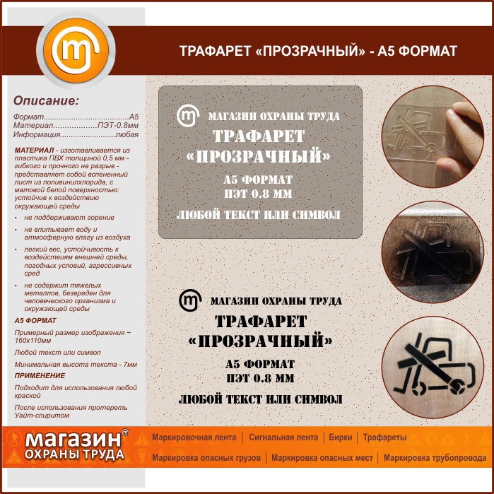 Трафарет «ПРОЗРАЧНЫЙ» (А5 формат, ПЭТ 0,8 мм) в Твери купить