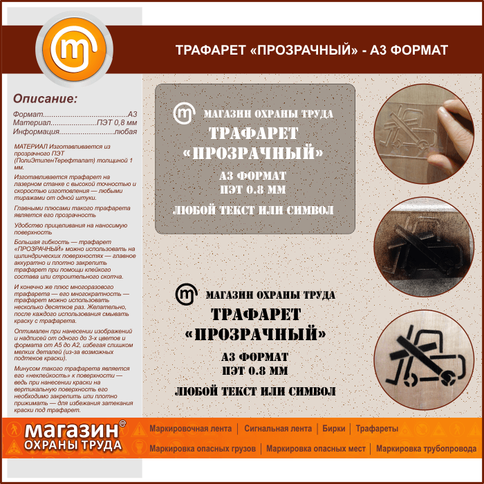 Трафарет «ПРОЗРАЧНЫЙ» (А3 формат, ПЭТ 0,8 мм) в Твери купить