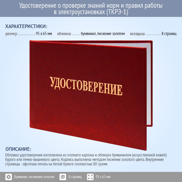Бланк удостоверения о проверке знаний норм и правил работы в электроустановках (новый образец 2021 года) (ТКРЭ-1) в Твери купить