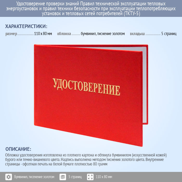 Бланк удостоверения проверки знаний Правил технической эксплуатации тепловых энергоустановок и правил техники безопасности при эксплуатации теплопотребляющих установок и тепловых сетей потребителей (ТКТУ-5) в Твери купить