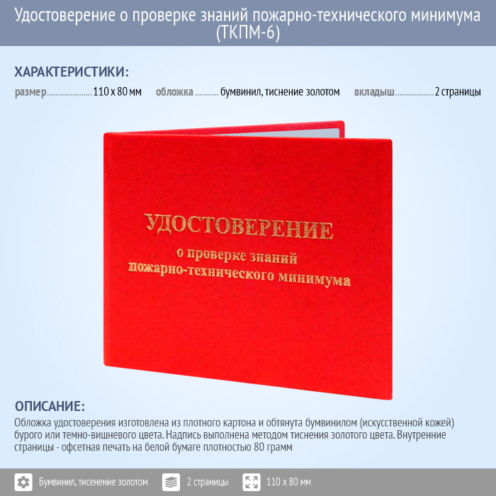 Бланк удостоверения о проверке знаний пожарно-технического минимума (ТКПМ-6) в Твери купить