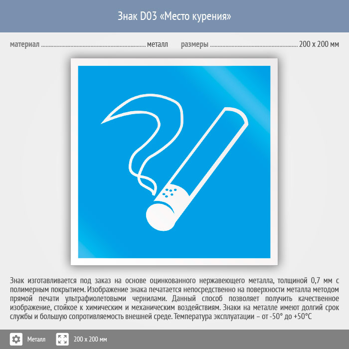 Знак D03 «Место курения» (металл, 200х200 мм) в Твери купить