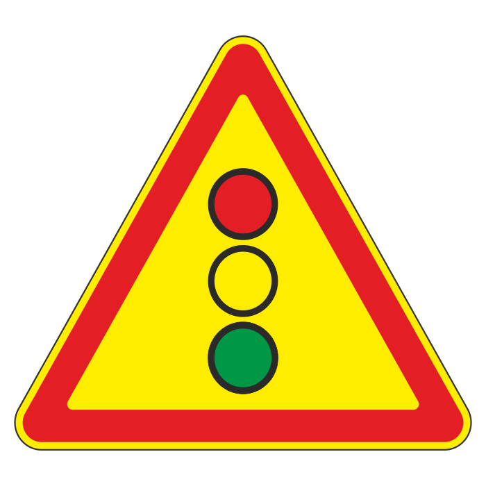 Дорожный знак 1.8 «Светофорное регулирование» (временный) (металл 0,8 мм, II типоразмер: сторона 900 мм, С/О пленка: тип Б высокоинтенсивная) в Твери купить