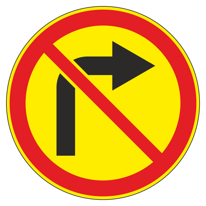 Дорожный знак 3.18.1 «Поворот направо запрещен» (временный) (металл 0,8 мм, I типоразмер: диаметр 600 мм, С/О пленка: тип А инженерная) в Твери купить