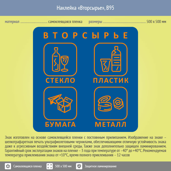Наклейка на бак «Вторсырьё», B95 (пленка c ламинированием, 500х500 мм) в Твери купить