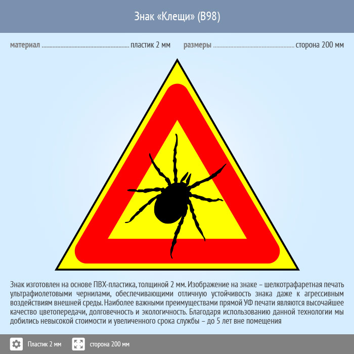 Знак «Клещи», B98 (пластик, сторона 300 мм) в Твери купить