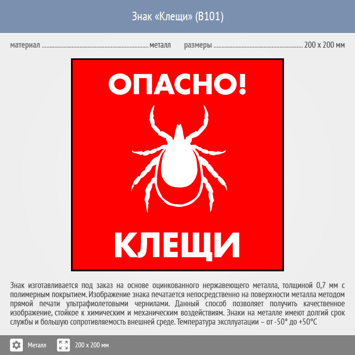 Знак «Опасно! Клещи», B101 (металл, 200х200 мм) в Твери купить