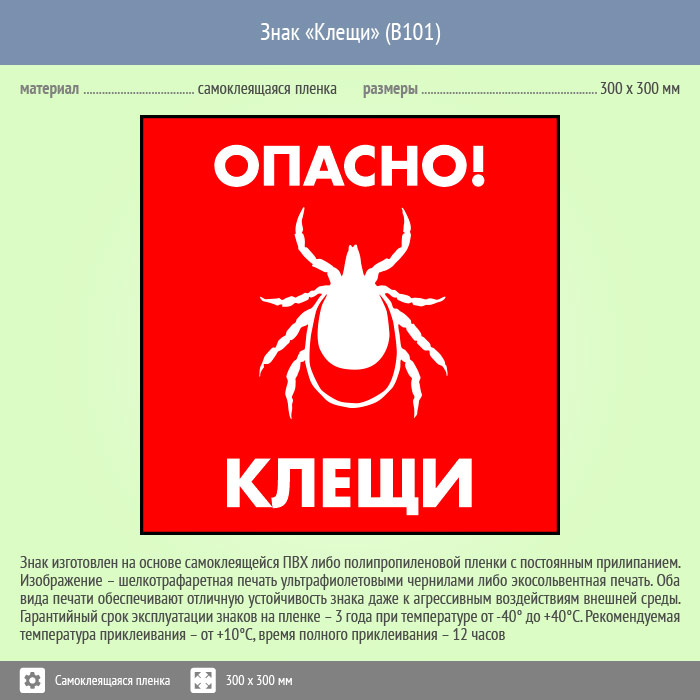 Знак «Опасно! Клещи», B101 (пленка, 300х300 мм) в Твери купить