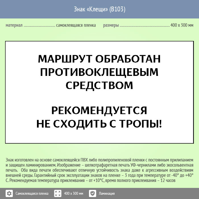 Знак «Клещи», B103 (пленка c ламинированием, 300х200 мм) в Твери купить
