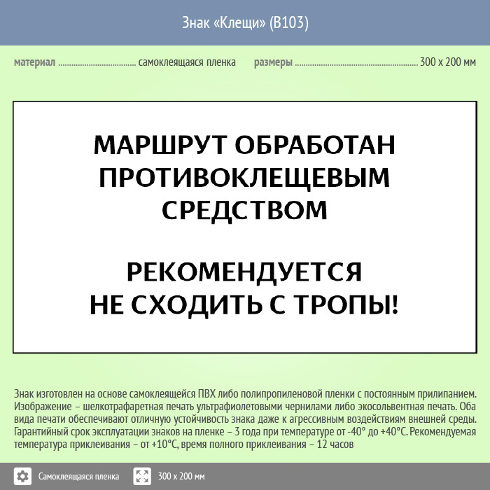 Знак «Клещи», B103 (пленка, 400х300 мм) в Твери купить