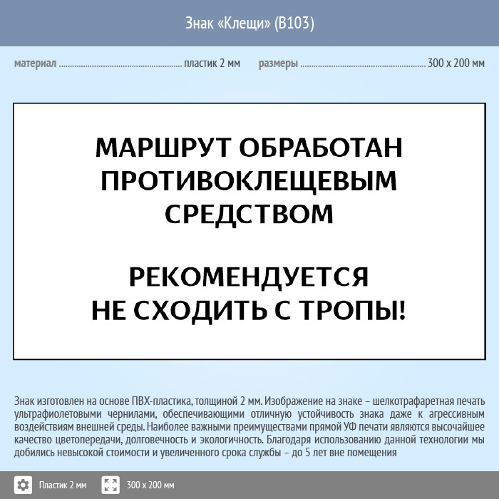 Знак «Клещи», B103 (пластик, 400х300 мм) в Твери купить