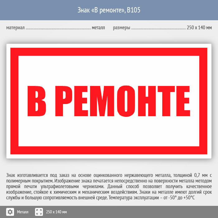 Знак «В ремонте», B105 (металл, 250х140 мм) в Твери купить