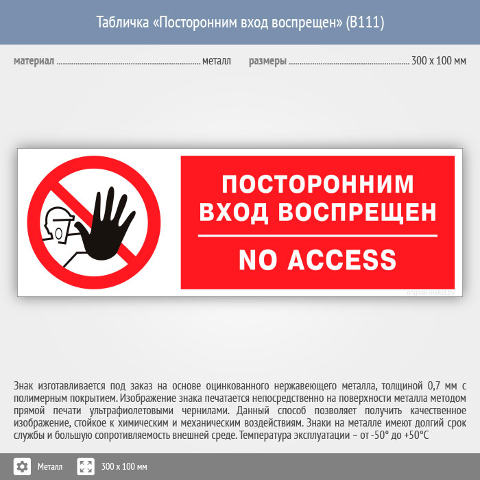 Табличка «Посторонним вход воспрещен», B111 (металл, 300х100 мм) в Твери купить