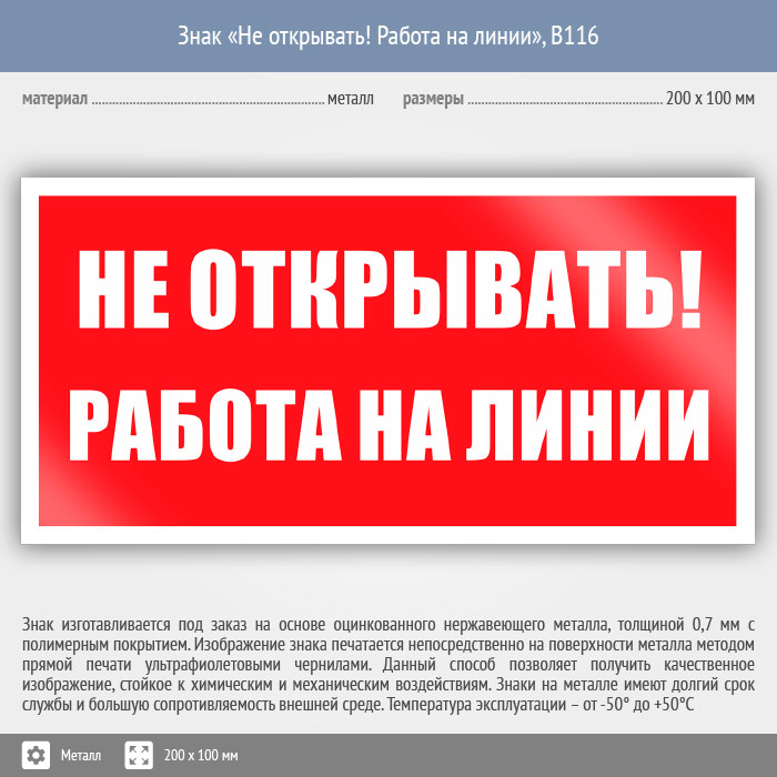 Знак «Не открывать! Работа на линии», B116 (металл, 200х100 мм) в Твери купить