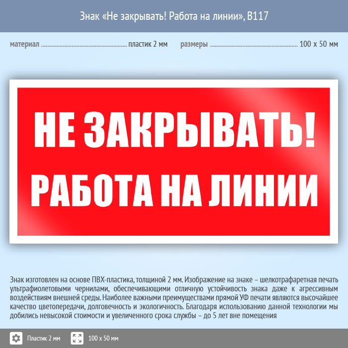 Знак «Не закрывать! Работа на линии», B117 (пластик, 100х50 мм) в Твери купить
