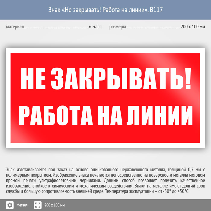 Знак «Не закрывать! Работа на линии», B117 (металл, 200х100 мм) в Твери купить