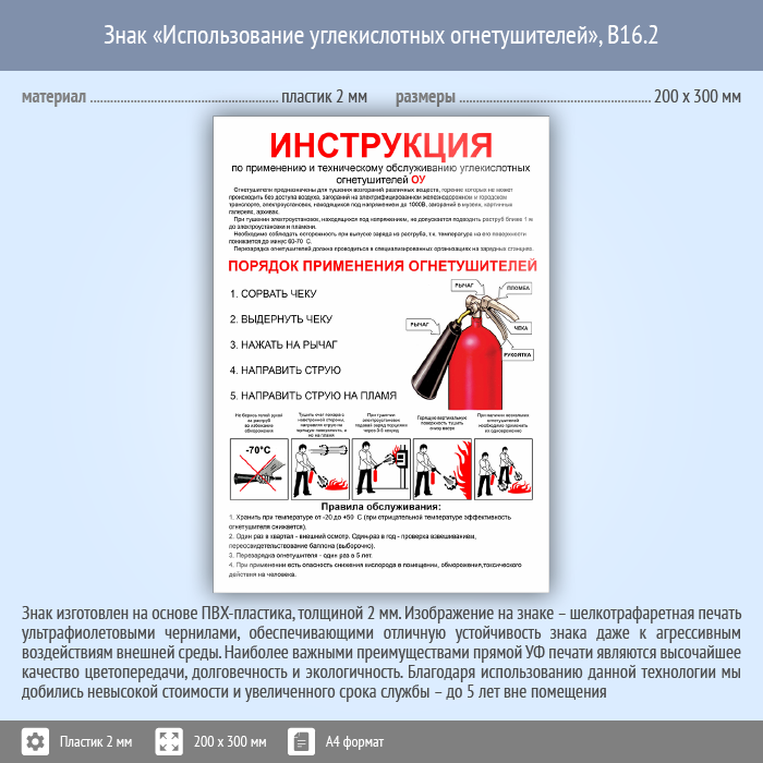 Знак «Использование углекислотных огнетушителей», B16.2 (пластик, 200х300 мм) в Твери купить