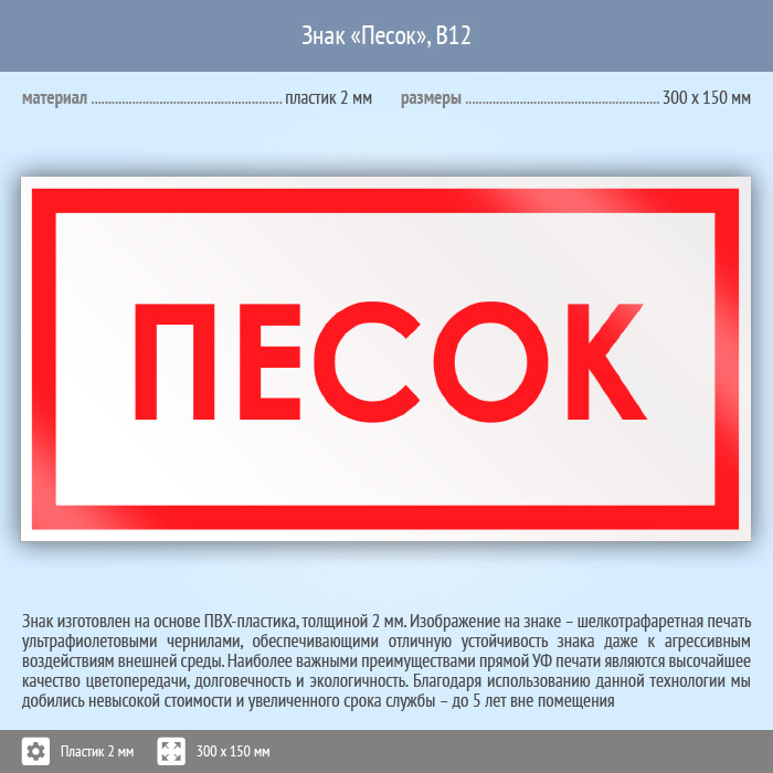 Знак «Песок», B12 (пластик, 300х150 мм) в Твери купить