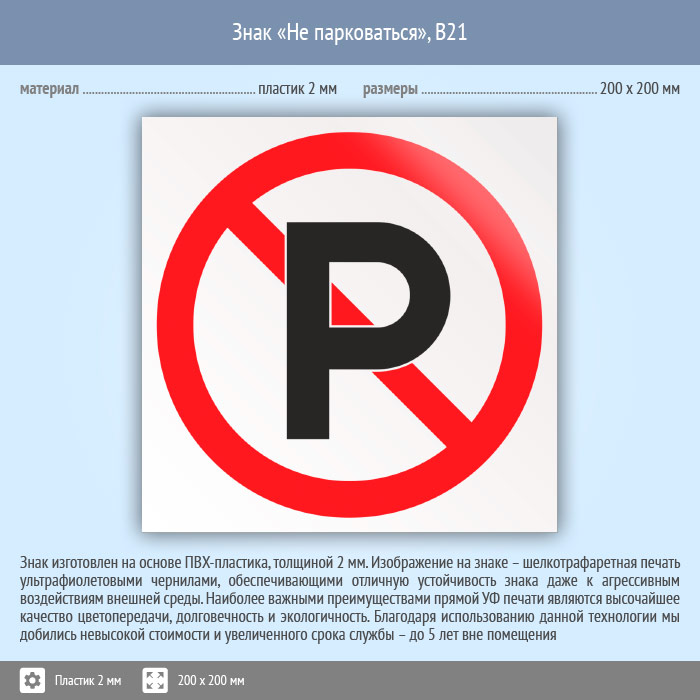 Знак «Не парковаться», B21 (пластик, 200х200 мм) в Твери купить