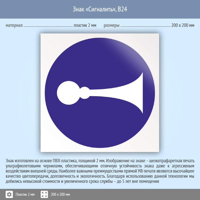 Знак «Сигналить», B24 (пластик, 200х200 мм) в Твери купить