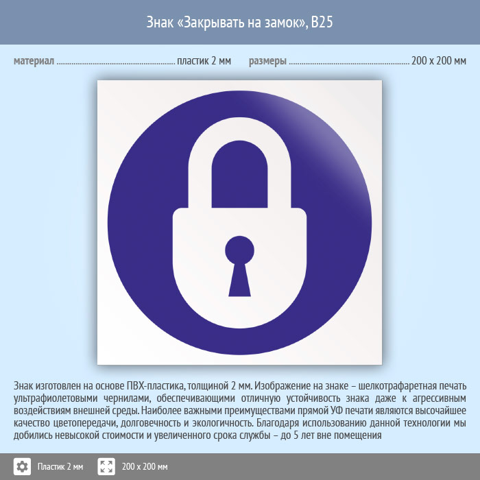 Знак «Закрывать на замок», B25 (пластик, 200х200 мм) в Твери купить
