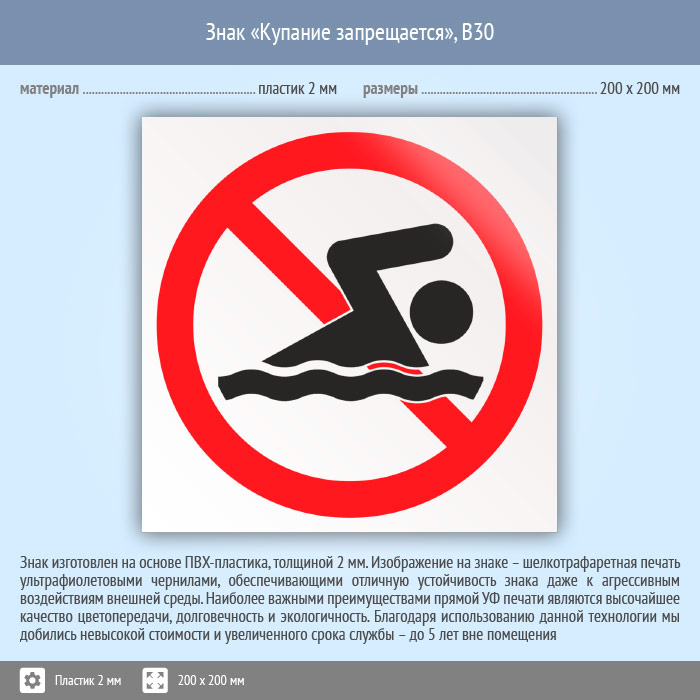 Знак «Купание запрещено», B30 (пластик, 200х200 мм) в Твери купить