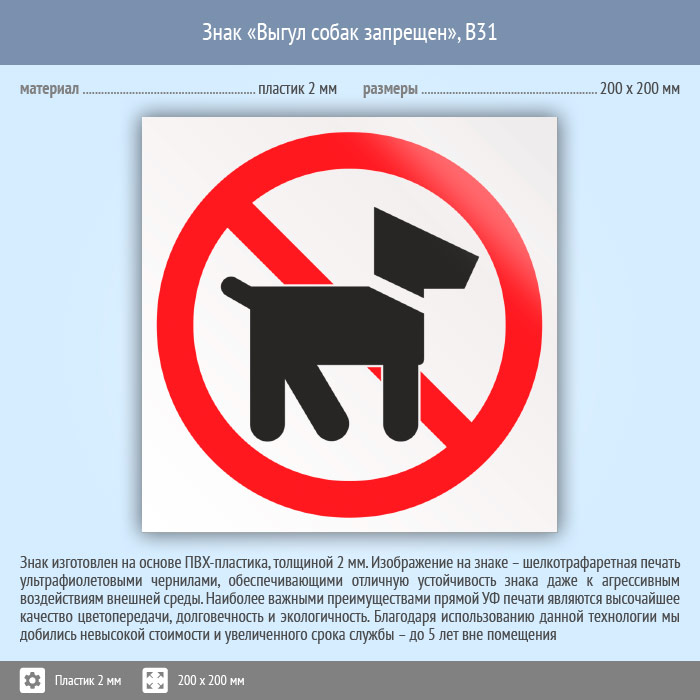 Знак «Выгул собак запрещен», B31 (пластик, 200х200 мм) в Твери купить