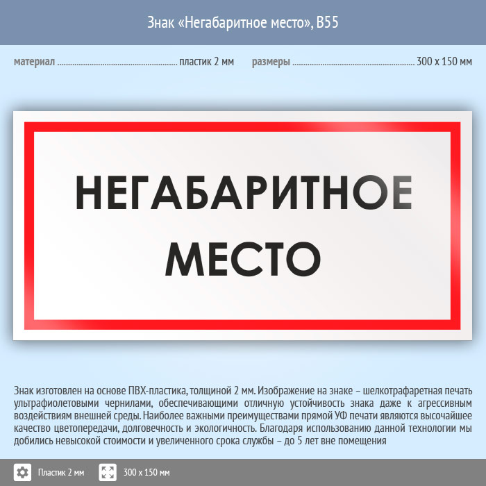 Знак «Негабаритное место», B55 (пластик, 300х150 мм) в Твери купить