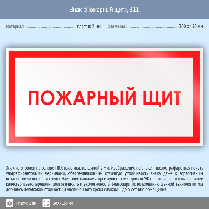Знак «Пожарный щит», B11 (пластик, 300х150 мм) в Твери купить