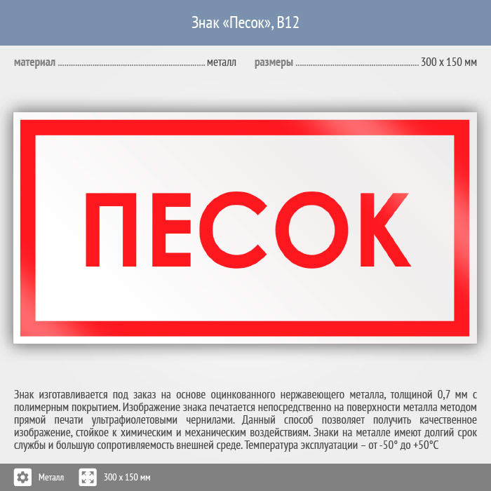 Знак «Песок», B12 (металл, 300х150 мм) в Твери купить